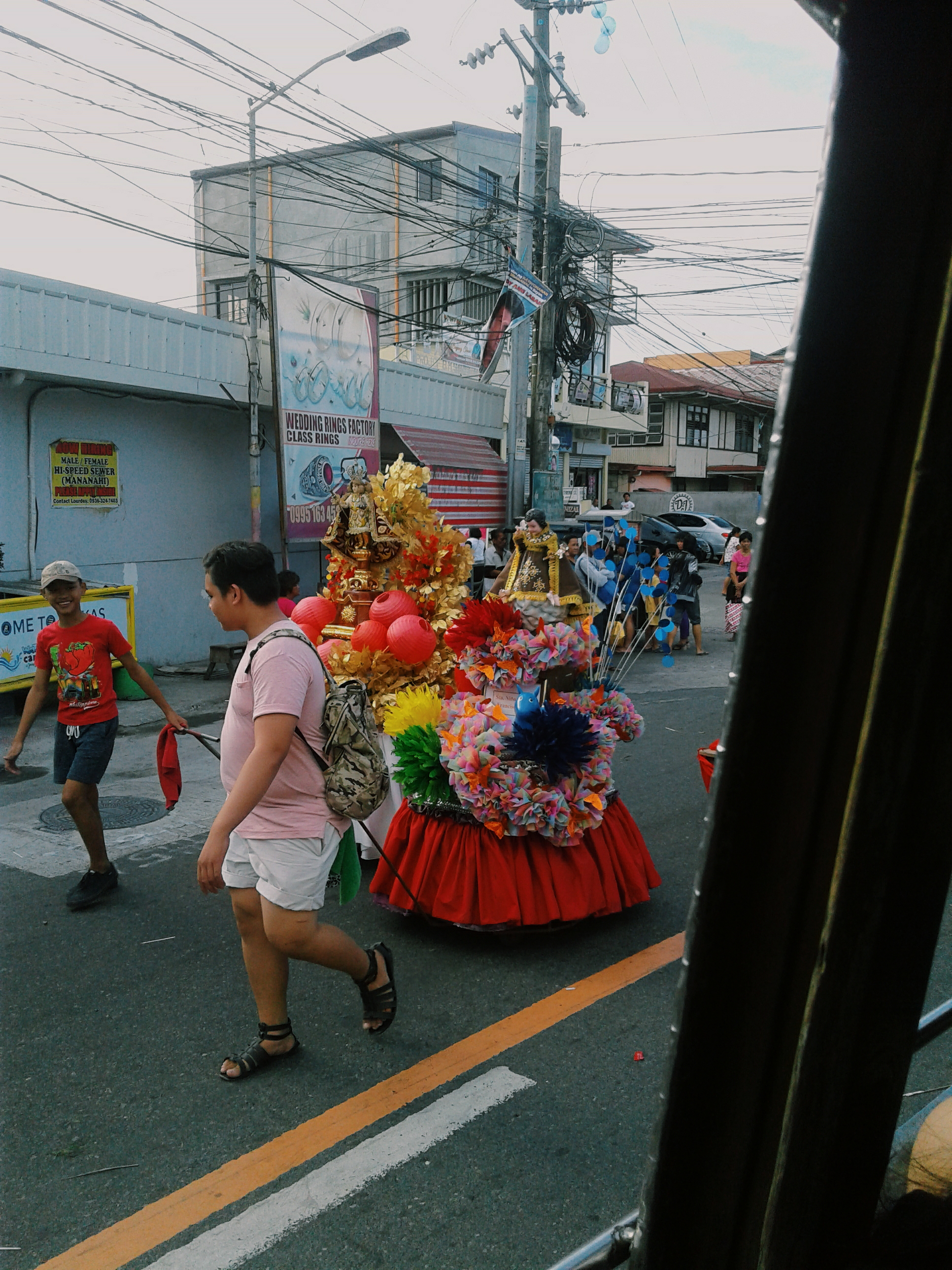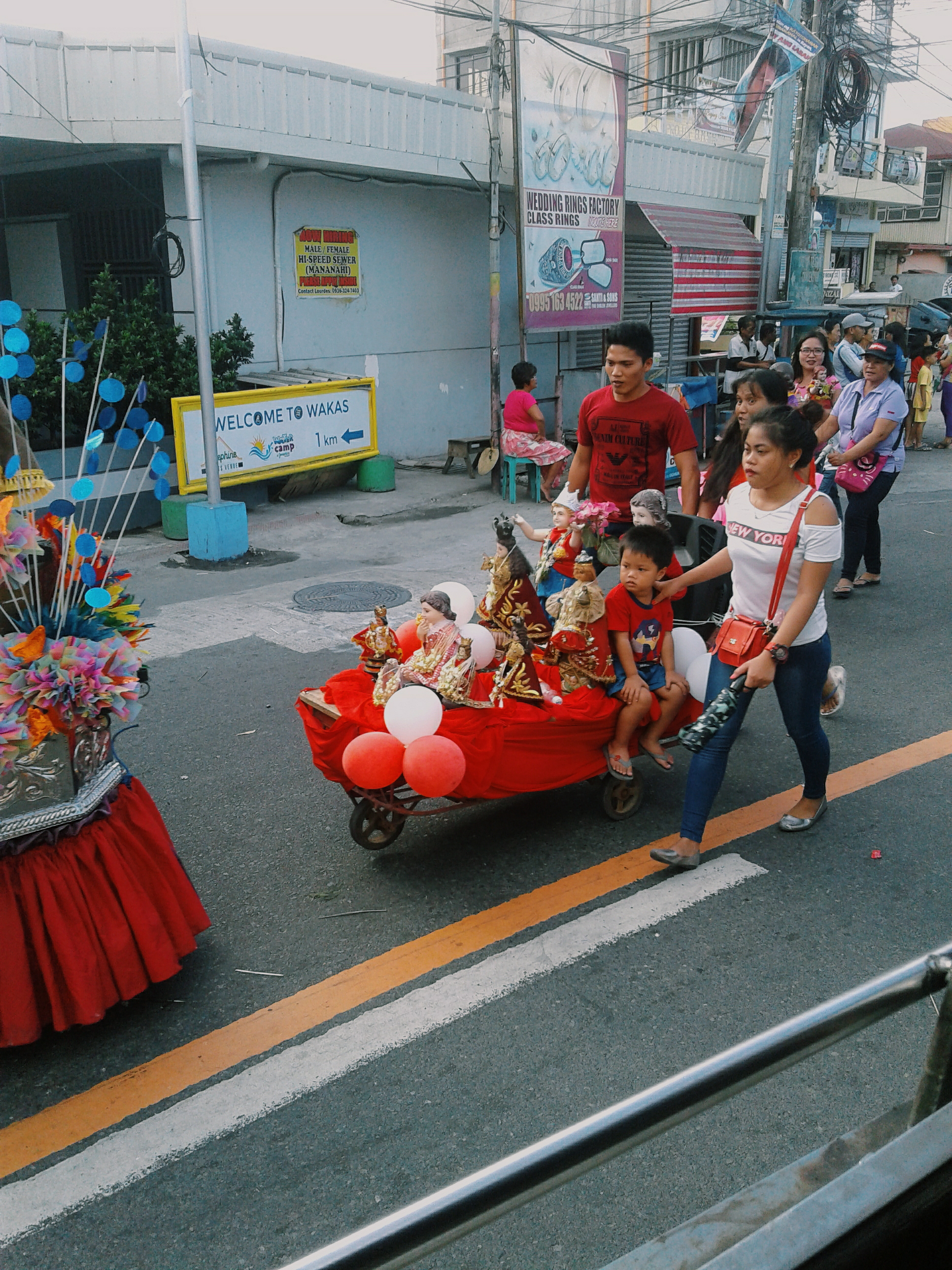On Sunday afternoon, Mila and I planned to go to a historical place in Kawit. It was near Rosario. We rode bus twice. On our way, there was El Nino parade. I was lucky to watch it. Unfortunately, our bus could pass the way because the parade. Then we turned back to the shortcut way. We were stopped in the main road and we needed to ride a bus to go there. Unluckily, there was no bus that would pass that place. So, we walked around 10 minutes or more.