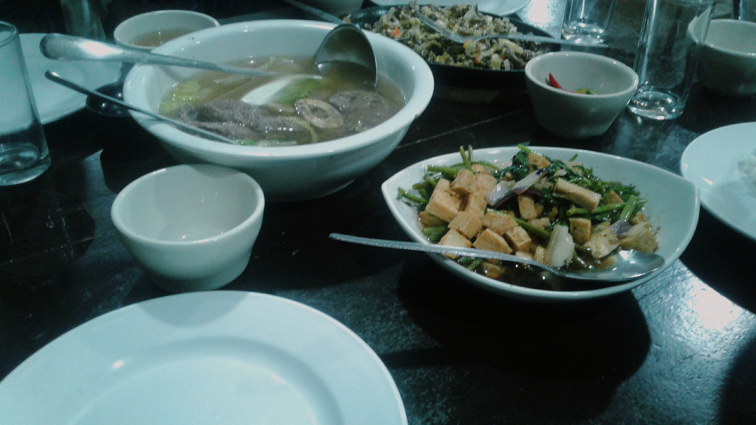 After that, we continued our trip. They wanted to go to Ginger Bread’s House, but we could find the place and it was already dark. Then we went to a restaurant for having our dinner. I ordered kangkong (water spinach) with tofu. I was missing that food because I could find it in Rosario. Hahaha.